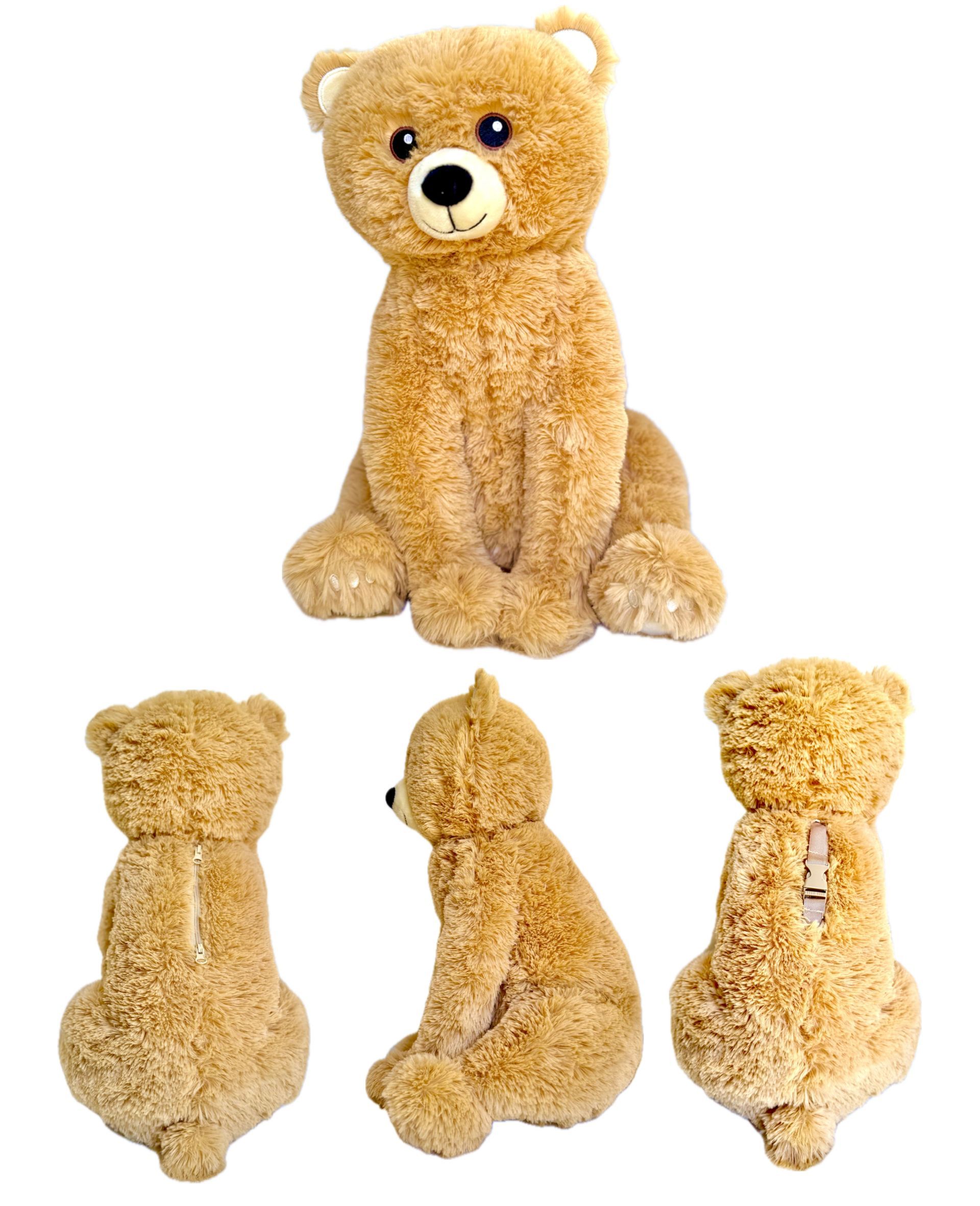 Grizzly Bear Stuffed Animal 14" with Zipper Pocket and Discreet Side Release Buckle-FREE SHIPPING